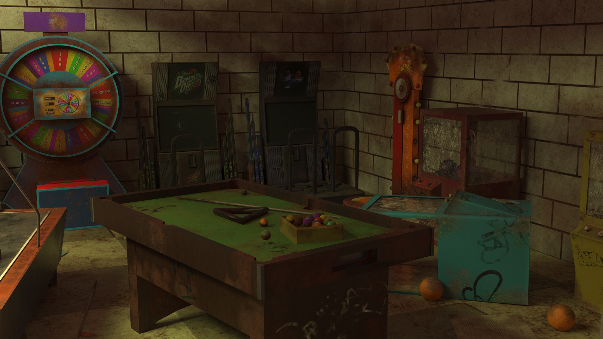 Post-apocalyptic arcade room - 3D Modeling & texturing
